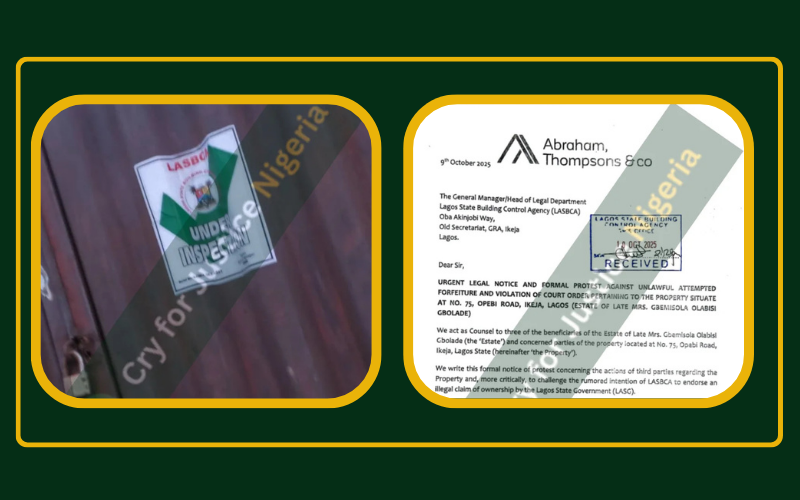 Shocking twist Lagos State Building Control Agency (LASBCA) appeared at the site and issued an “inspection” seal, but did not enforce the court’s restraining order.